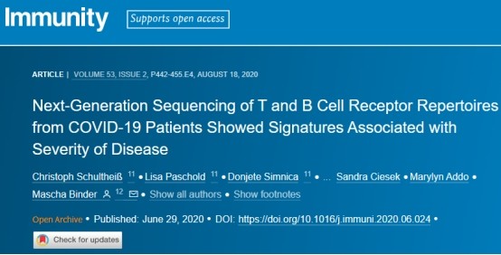 新冠肺炎患者TCR和BCR二代测序揭示与疾病严重程度相关特征