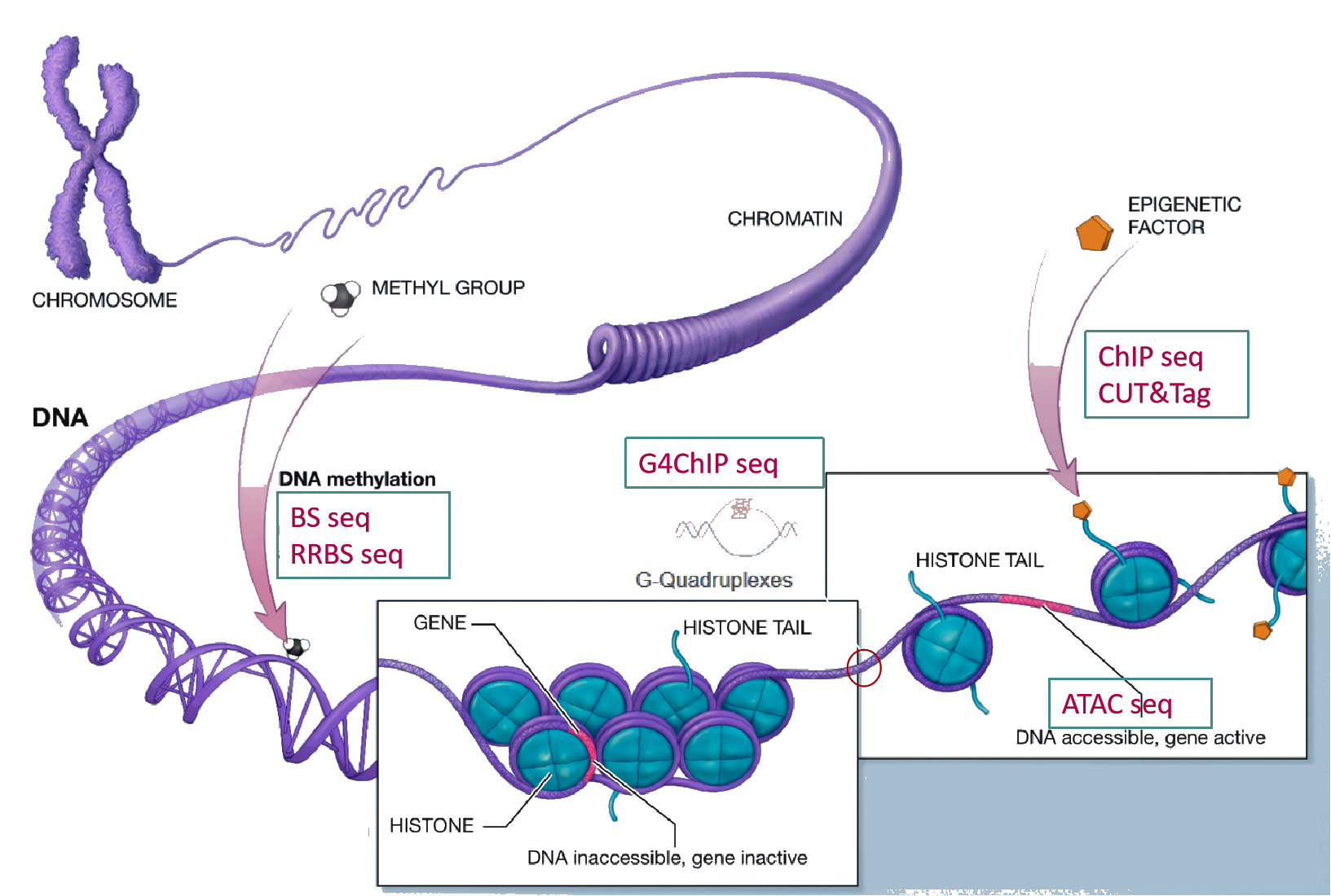 表观遗传调控,包括染色体结构、染色质可及性、组蛋白修饰,以及DNA修饰等,是最重要的基因表达调控方式之一。表观遗传组学就是通过特定分子生物学技术和高通量测序结合,对上述表观遗传修饰的分布、在生物学过程中的变化等进行研究的组学技术。